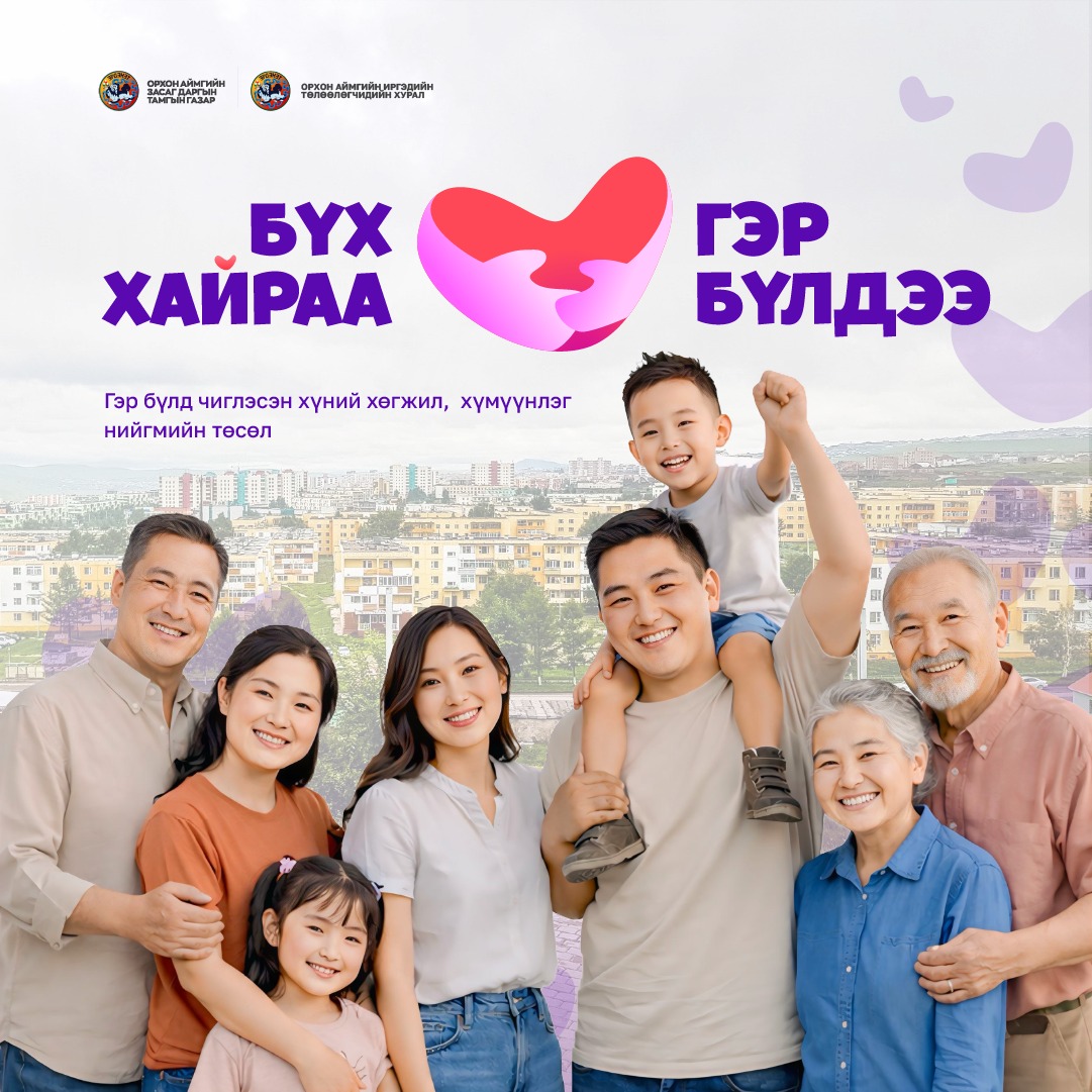 Тус төсөл Орхон аймгийн Иргэдийн Төлөөлөгчдийн Хурлын 2025 оны 02/16 дугаар тогтоолоор баталсан “Хүн амын бүлгүүд, нийгмийн салбарын хүний нөөцийн хөгжлийн хөтөлбөр”-ийн хүрээнд хэрэгжиж байгаа бөгөөд Монгол Улсын төрөөс баримталж буй гэр бүл, хүүхдийн хөгжил, хамгааллын бодлогыг орон нутгийн хэмжээнд бодитоор хэрэгжүүлэх зорилготой.
